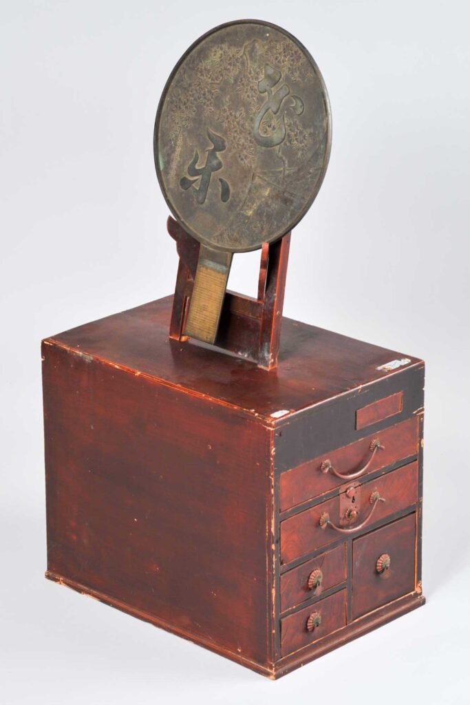 歌舞伎役者や女性が整髪する際に使用されました。鏡は銅と錫の合金製だったと言われています。