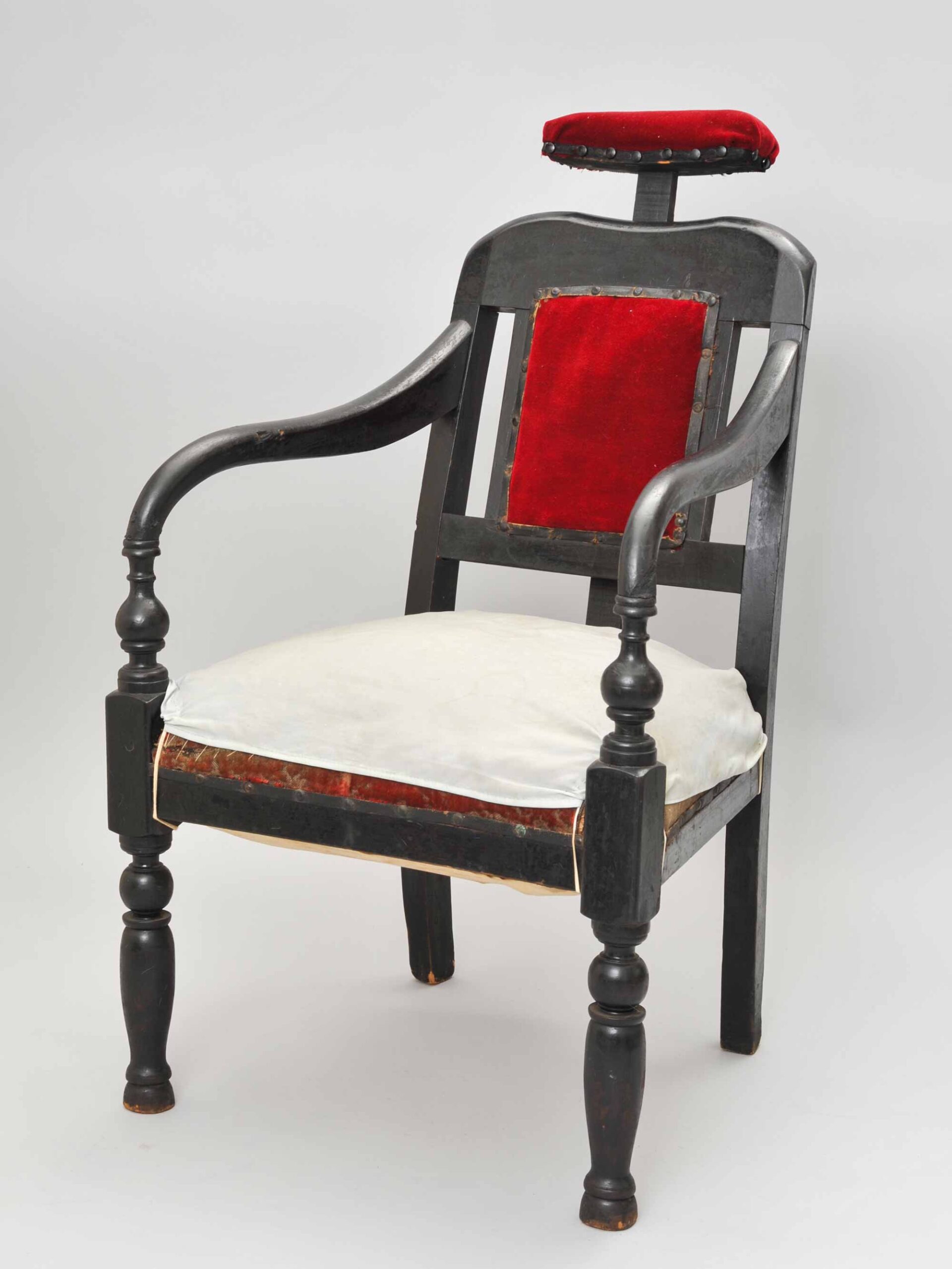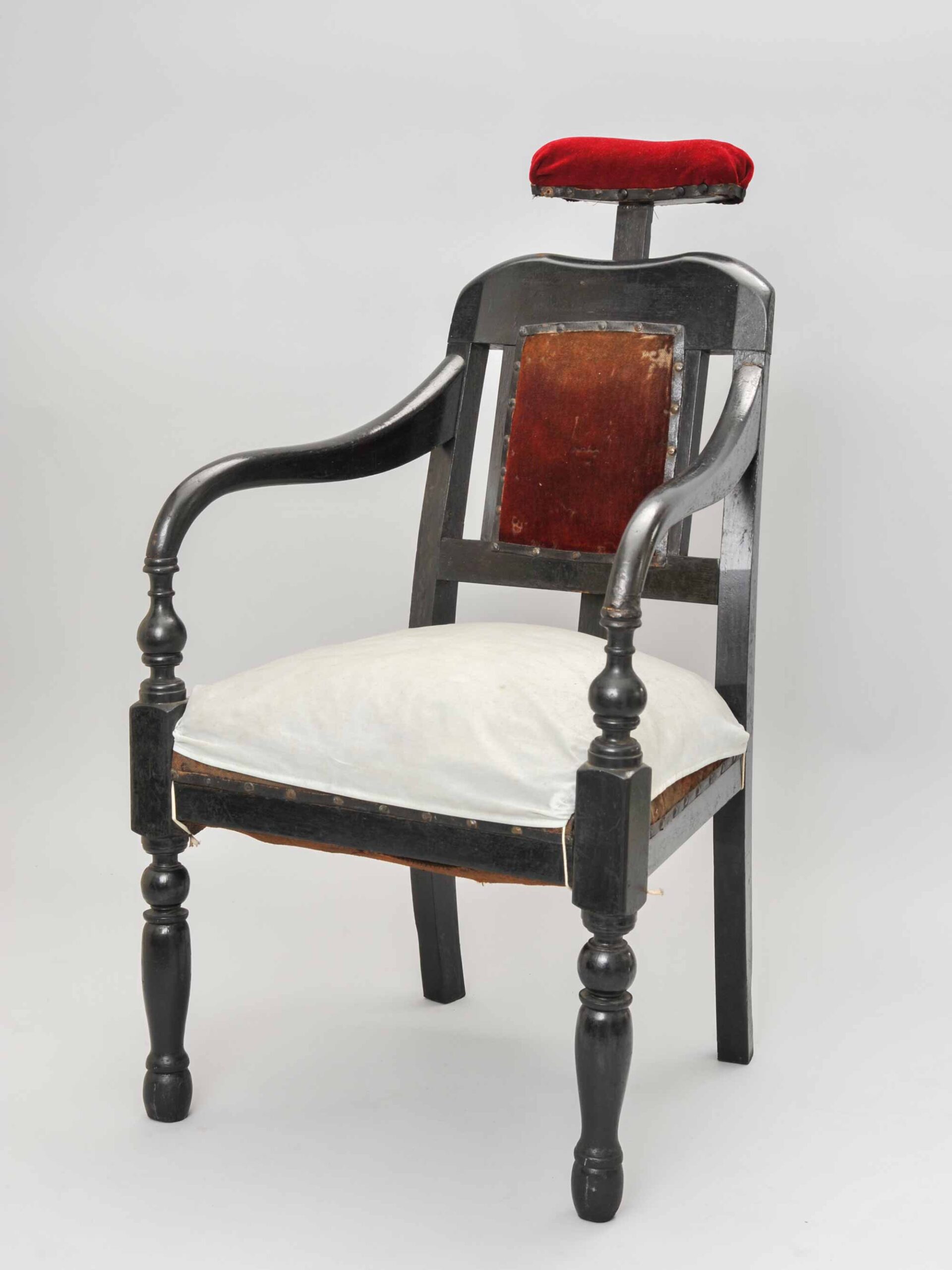 西洋理髪の渡来と同時に、理容椅子も日本に伝えられた。明治の中期以後に広く普及。当初は木製、四ツ足のものが主流だった。それ以前は籐で編んだ籐の椅子を置く理容店が多かった