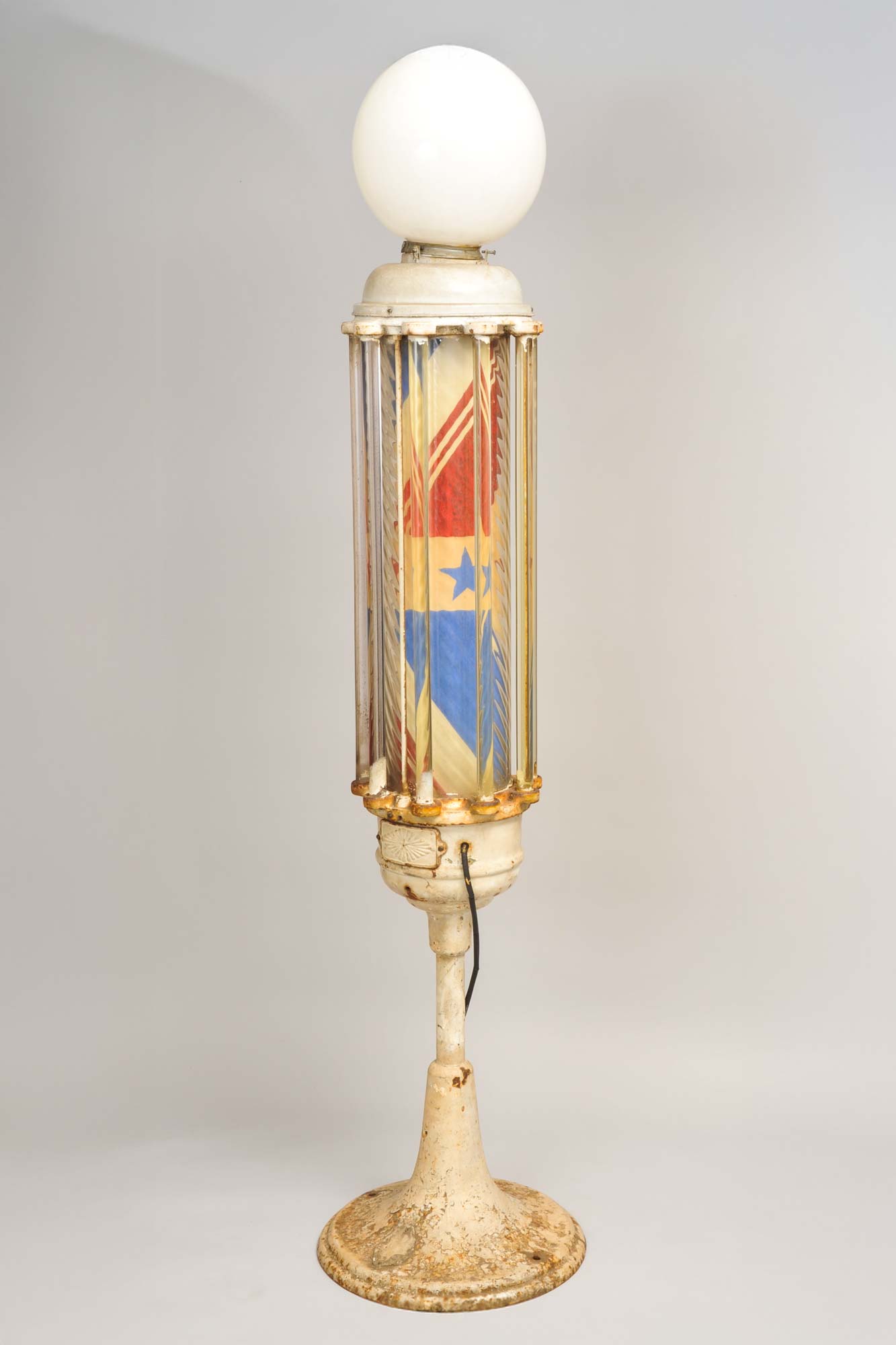 理容店の目印として確立している3色のサインポール。このころになると、電気で中の赤、白、青の部分が回転するものも生まれた。